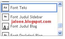 geser jendelanya ke bawah, pilih salah satu font yang akan kita ganti atau rubah. misalkan font text atau Font Judul Blog.